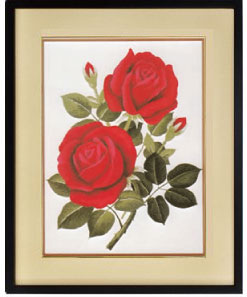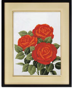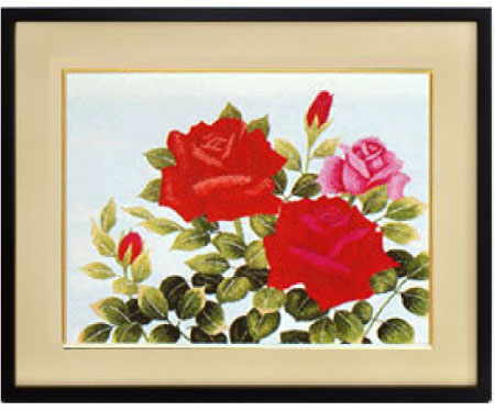 セット内容(価格は税別):三輪の紅バラ(キット・91):3000円・額縁(3号木地):4800円
