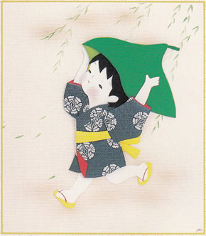 | 押絵 No171 にわか雨(サイズ:27×24cm) |