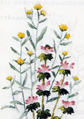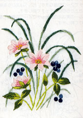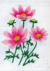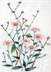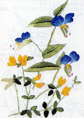 フランス刺繍とは、欧風刺繍の通称。特に、リンネルなどに枠を用いて刺したものの事です。 フランス刺繍は日本刺繍と違い木綿の布に木綿の糸で刺していくのが特徴です。