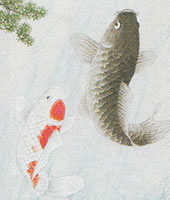 ゆるやかに泳ぐ錦鯉などの鱗の陰影まで文化刺繍では表現が可能です。
