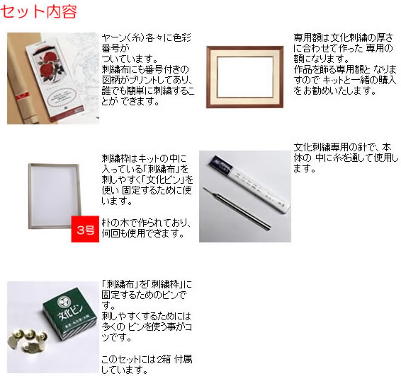 と必要なものが揃ったセットになりますので、すぐに文化刺繍が楽しめます。