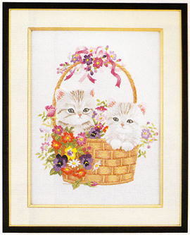 東京文化刺繍キット No40 篭の子猫(3号)