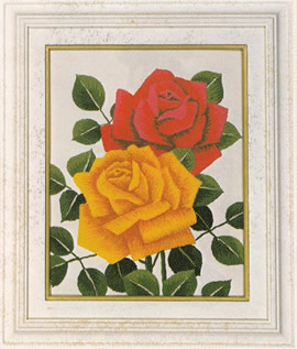 布(番号プリント付)、文化ヤーン(番号付)、実物カラー写真(番号図付)、木製額、ガラス付