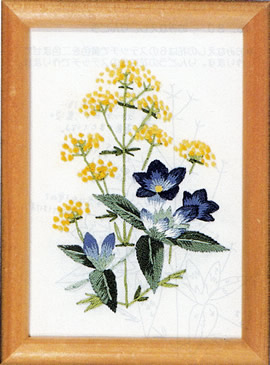 プリント付布・刺繍針・刺繍糸・木製額(ガラス付)・刺繍の完成カラー写真・説明書