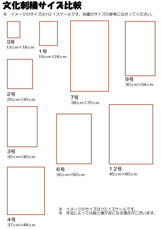 東京文化刺繍 サイズ一覧